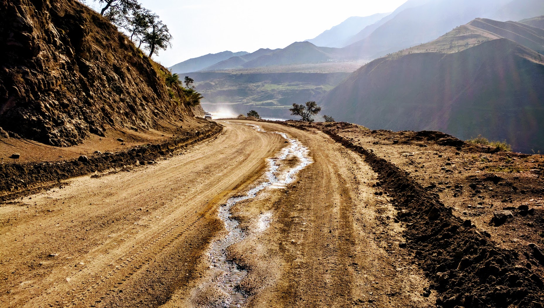 After finishing that long downhill stretch, I reached the road leading toward the Afghan border, only 120 km away.